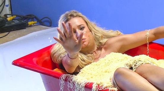 Помимо лишних килограммов, которые примерили на себя Бузова и Миногарова, телезвездам пришлось также окунаться в ванную с лапшой быстрого приготовления. Фанаты были удивлены, когда увидели Ольгу с лишними килограммами.