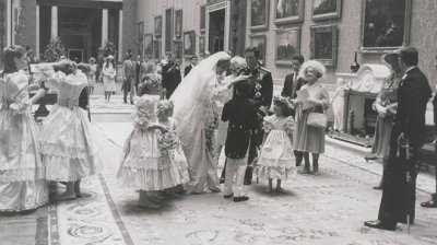 На фото до сих пор любимая многими принцесса Ди – в пышном свадебном платье, ее окружают дети и члены королевской семьи. Изображены также Елизавета II, принцессы Энн и Маргарет и принц Эндрю.