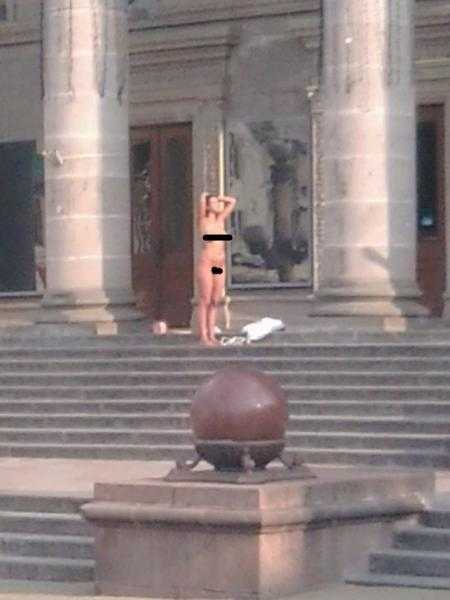 Вчера утром горожане увидели в центре города голую женщину. Возле драмтеатра ее удалось зафиксировать на фото. Очевидцы, впрочем, не рискнули спросить почем она раздета.