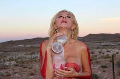 Надежда Волянова, которую многие называют «русской Леди Гагой», сейчас живет в США. Недавно она решила выразить свой протест против производства натурального молока. Для этого женщина разделась до гола и устроила смелую фотосессию. Правда, перед этим она обмазала грудь красной краской.