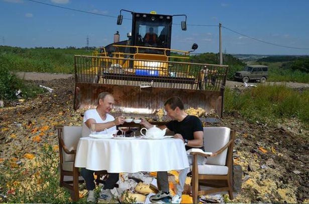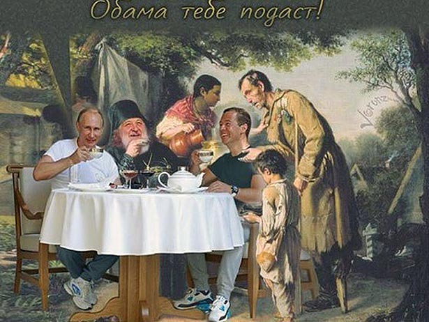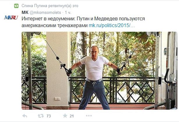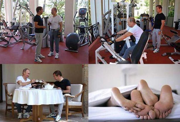 Пользователи соцсетей выложили в Сеть множество фотопародий на совместное качание мышц Владимира Путина и Дмитрия Медведева.