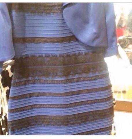 Снимок данного платя появился на просторах Сети в начале текущего года. Из-за обработки фотографии возникла так называемая иллюзия, из-за которой пользователи интернета стали спорить о цвете наряда. На самом же деле, платье является ярко-синим, а в качестве декора на нём присутствует черное кружево.