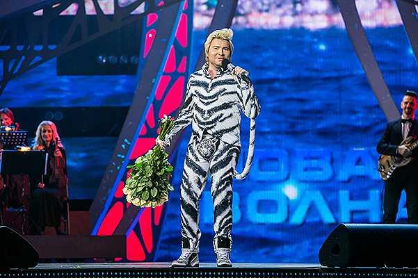 На сцене сочинского конкурса «Новая волна» Золотой голос страны Николай Басков предстал в костюме белого тигра, чтобы спеть композицию эпатажного певца Валерия Леонтьева «Августин».
