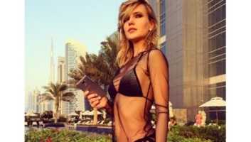 Недавно красотка опубликовала на своей странице в Инстаграм фото, где позирует в оригинальном купальном костюме из светящейся черной ткани.