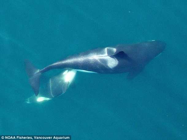 Морским биологам совместно с Национальным управлением океанических и атмосферных исследований удалось заснять при помощи дрона (беспилотный летательный аппарат) уникальные кадры кормления касаткой ее новорожденного китенка, сообщает The Daily Mail.