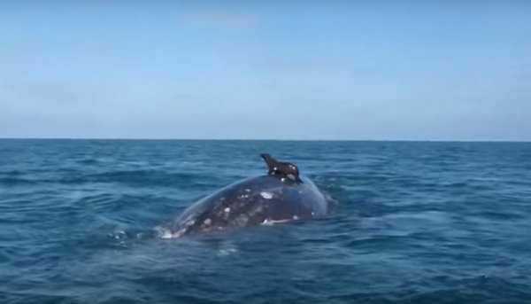 В интернете появилось необычное видео, которое мгновенно привлекло внимание пользователей сети. Группа туристов, которая совершала морскую прогулку у побережья Мексики, стала свидетелем того, как морской котик прокатился на ките.