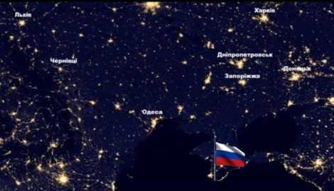 В начале видео над Крымом развевается флаг РФ и играет государственный гимн, и резко на 8 секунде в Крыму пропадает свет.