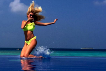 Ростовская красавица Виктория Лопырева вместо проруби окунулась в океан. Об этом стало известно после того, как девушка в Instagram выложила фото, где она ныряет в Индийский океан в ярко-зеленом купальнике.