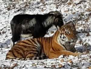 В Приморском сафари-парке разлучили тигра Амура и живущего вместе с ним козла Тимура.
