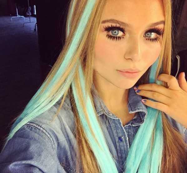 На своей странице в Инстаграм юная красотка опубликовала фото, на котором позирует с длинными ресницами и необыкновенными волосами с голубыми прядями. Стоит отметить, что не все оказались в восторге от нового эксперимента школьницы. Многие посчитали это сильно вызывающим.