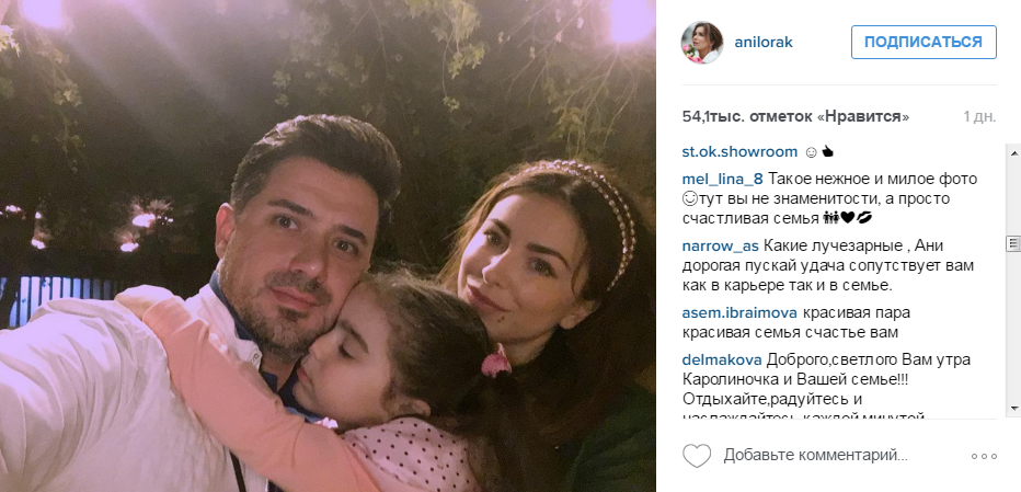 "Какие лучезарные! Ани, дорогая, пускай удача сопутствует вам как в карьере, так и в семье", "Такое нежное и милое фото! Тут вы не знаменитости, а просто счастливая семья", "Красивая пара, красивая семья, счастья вам", "Доброго,светлого Вам утра, Каролиночка и Вашей семье!" - такие комментарии появились под снимком.