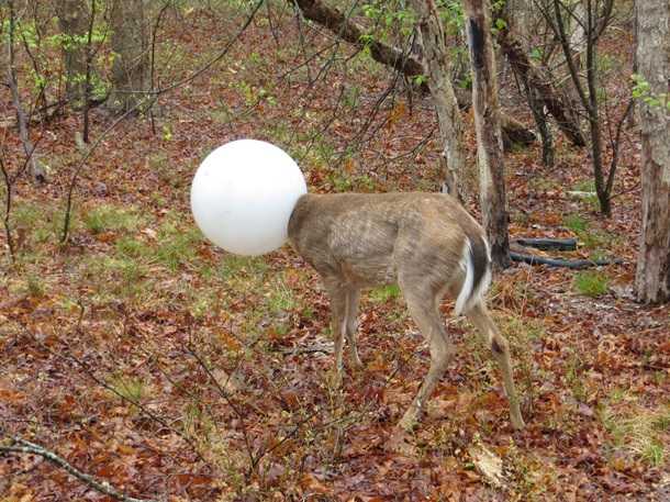 Олень, чья голова застряла в плафоне фонаря, стал героем интернет-мемов, сообщает Mashable.