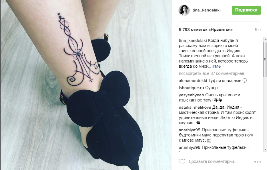 Татуировку Тина посвятила событиям, которые случились с ней в Индии. Подписчики телеведущей остались заинтригованы и с нетерпением ждут, когда же Канделаки расскажет о своих секретах. Также многие одобрили сделанную татуировку.