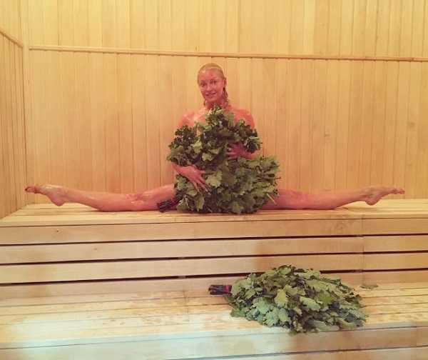 На одном из последних изображений знаменитость запечатлена в бане. Отметим, что если ранее Анастасия фотографировалась сидя в парилке в костюме Евы, слегка прикрывшись вениками, то теперь в таком виде она исполнила шпагат.
