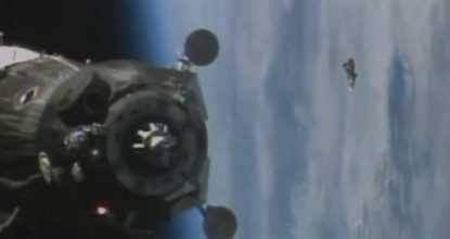Во время стыковки с МКС к кораблю "Союз" приблизился неопознанный летающий объект. НЛО удалось зафиксировать камерам, установленным на МКС.