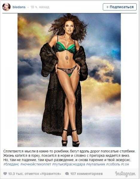 Телеведущая Эвелина Бледанс порадовала поклонников, разместив в своем блоге откровенную фотографию. На опубликованном снимке Эвелина стоит в длинной распахнутой шубе и в нижнем белье.