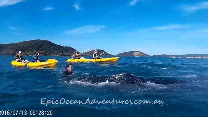 13 июля группа каякеров увидела, что огромный горбатый кит всплыл рядом с ними и пытался привлечь к себе внимание.