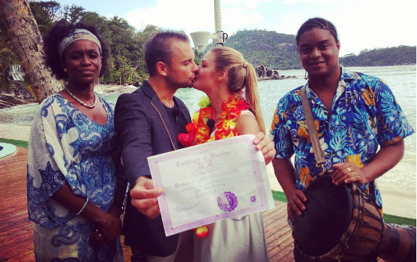 В сети Мишина опубликовала фотографию, на которой целует молодого мужа. При этом парочка держит свидетельство о заключении брака. Молодожены были полностью поглощены обществом друг друга и не скрывали от посторонних переполняющие их сердца чувства.