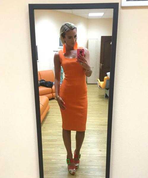 Светская львица Ольга Бузова разместила в Instagram селфи у зеркала в ярко-оранжевом платье-резинке. Телезвезда дополнила его серьгами и босоножками такого же цвета.