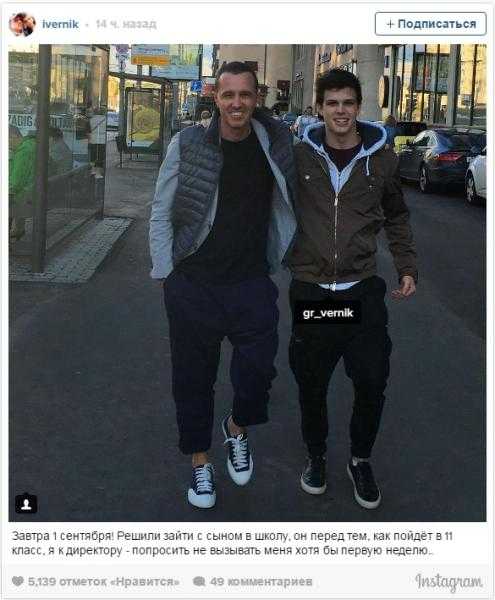 Сын актера Игоря Верника Григорий сегодня пошел в 11-й класс. А накануне знаменитый отец встретился с директором его школы.