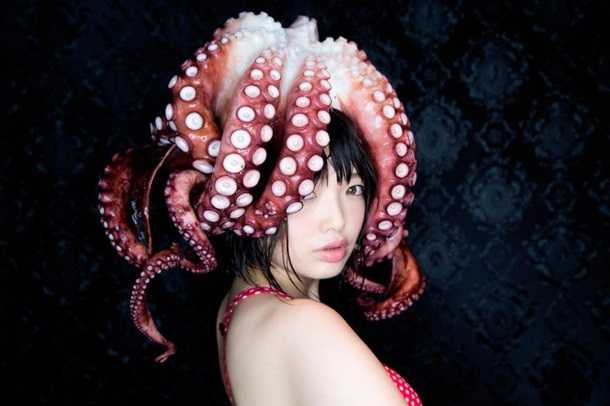 Японская девушка-косплеер Намада снялась в фотосессии обнаженной, с живым осьминогом на теле. Гигантский океанический моллюск, по информации издания "The Mashable", достигал по весу 18 килограммов.