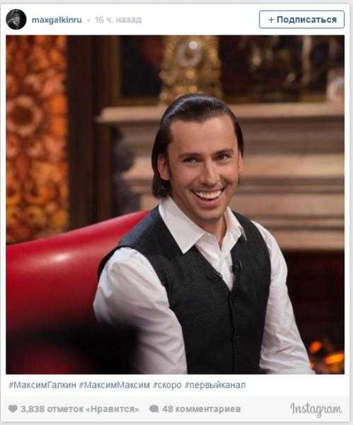 Телеведущий Максим Галкин «зализал» волосы назад и полностью открыл лицо.