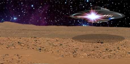 Внимание виртуальных исследователей привлек парящий над поверхностью планеты светящийся объект.