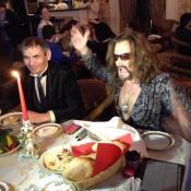 Он появился перед журналистами в очень экстравагантном виде. Также он пританцовывал, кричал и нашептывал мантры. Еще он раскрыл имена своих муз: Людмила Браташ и Лена Ленина.