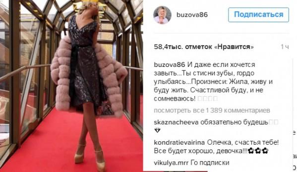 «И даже если хочется завыть...Ты стисни зубы, гордо улыбаясь...Произнеси: Жила, живу и буду жить. Счастливой буду, и не сомневаюсь!» - написала Бузова.
