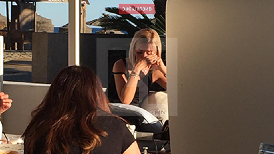 Отдыхающие рассказывают, что телеведущая практически все время плачет и не выпускает телефон из рук.