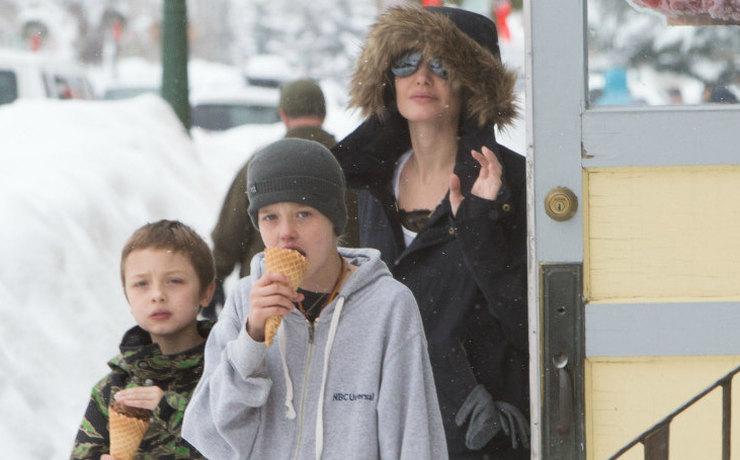 Журналистам удалось сфотографировать актрису с дочерью Шайло и сыном Ноксом на выходе из магазина, где она только что купила детям мороженое. Столбик термометра в этот день достигал минус 15 градусов, а дочь Джоли предпочла обойтись без верхней одежды, что не помешало ей с аппетитом наслаждаться мороженым.