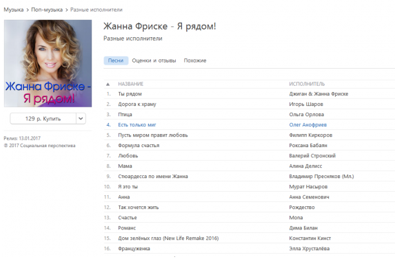 В iTunes наконец стал доступен альбом памяти Жанне Фриске. Всего в сборнике 23 музыкальных композиции.