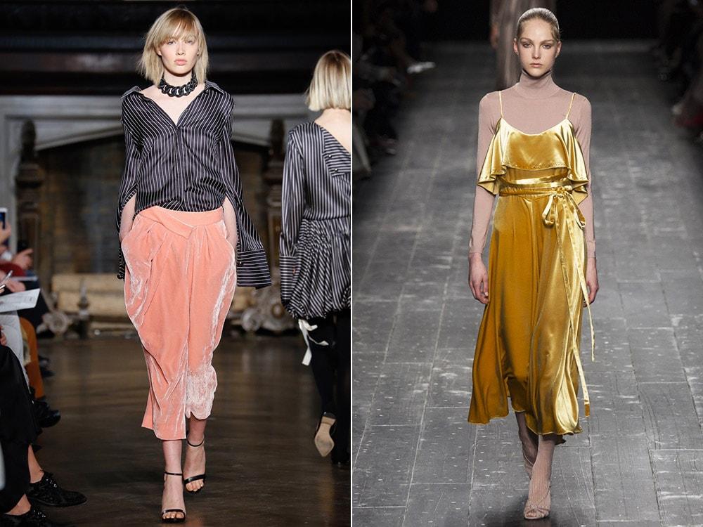 Тенденции моды 2017 удивляют разнообразием отсылок к самым разным материалам, но бархат лидирует бесспорно. Этот роскошная ткань служит лейтмотивом коллекций в абсолютно разных стилях, ему подвластны и викторианская готика, и 1980-е, и панк и вечная классика. Из бархата выполнены все мыслимые предметы гардероба, особенное внимание стоит уделить брючным костюмам, ботильонам на устойчивом каблуке, ботфортам и платьям с драпировками.