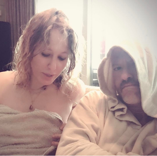На фото Ксения запечатлена в махровой простыне. Рядом с ней в кадр попал мужчина в халате, и это вовсе не Максим Виторган.