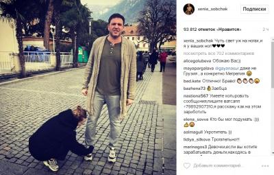 В кадре Ксения завязывает шнурки возлюбленному прямо на улице. При этом Максим стоит и непонятно, почему именно жена завязывает ему шнурки. Несмотря на это, странное фото набрало много лайков.