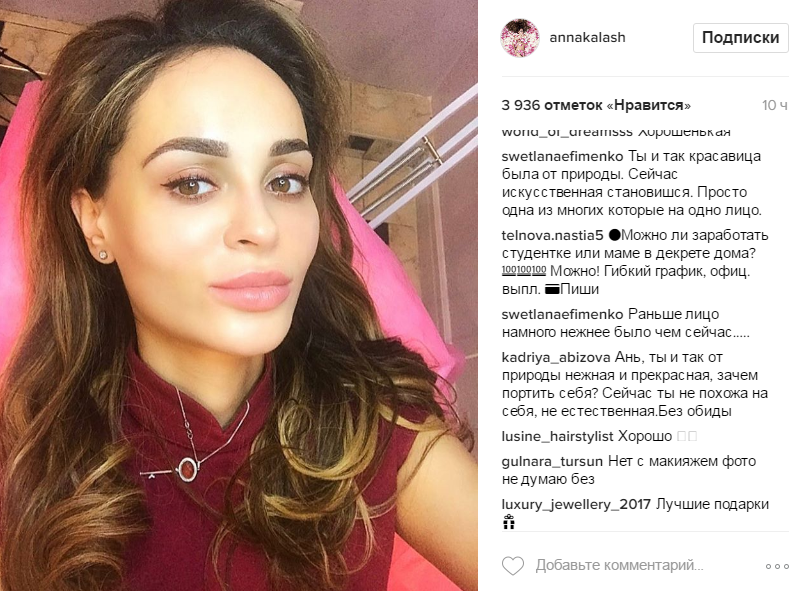 "Анечка, красота у тебя природная. Не порть ее", "Губки перебор. Надо остановиться", "Какая-то неузнаваемая", "Стала такая, как и все. На одно лицо", "Аня, вы естественная намного красивее, а сейчас вы уже изменились не в лучшую сторону. Зачем вам это", - высказывались недовольные поклонники.