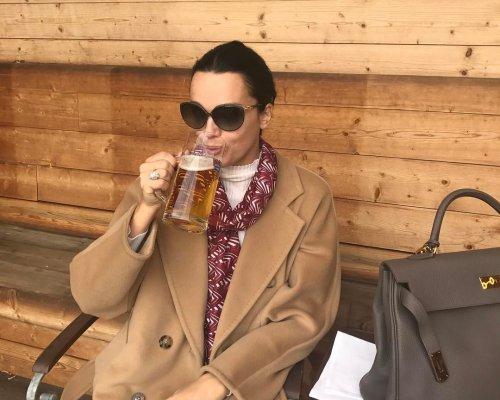 Слава решила с самого утра начать праздновать последний день зимы. Она в заведение, которое полностью покрыто деревом заказала себе бокал пива и отдыхает перед началом трудного вторника. Девушка в этот день решила одеть большие тёмные очки, красный шарф со светлыми узорами и пальто. Певица расположилась в непринуждённой позе и наслаждается прекрасным утром. В комментарии она сообщила, что действительно первая часть дня получилась очень удачной.