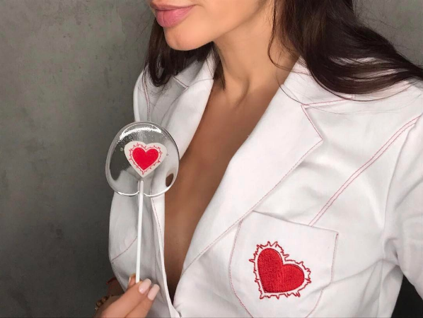 Конечно же, первой и главной моделью Эвелины Бледанс, как воспоминание о «Маски-шоу», халат медсестры. Оно же платье, которое Эвелина советует надевать исключительно на голое тело. Платье из легкой джинсовой ткани украшено изображениями сердца и линии кардиограммы, которые стали логотипом бренда.