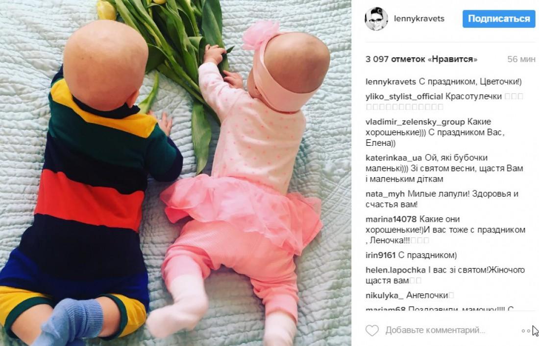 Юмористка Елена Кравец вчера поздравила всех женщин с весенним праздником. У себя в соцсети она опубликовала снимок, на котором запечатлены ее любимые двойняшки.