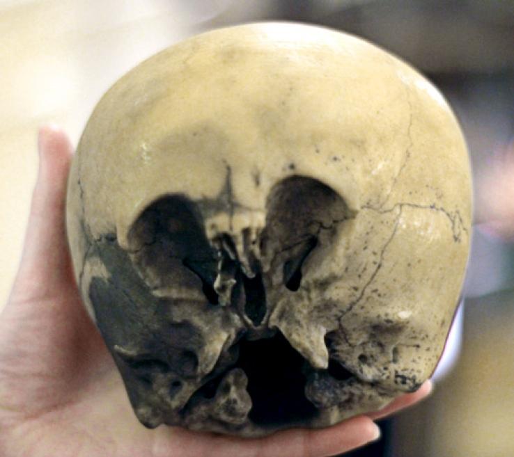 Тем не менее, череп имеет существенные деформации во всех его частях. Так, орбиты его глаз необычайно мелкие, а канал зрительного нерва расположен ближе к основанию орбит. Затылочная кость в задней части черепа сплющена. На ней нет ни одной фронтальной пазухи, а такая особенность встречается лишь у 10% населения.