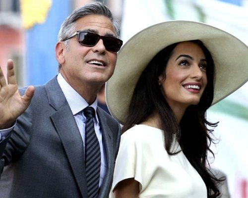 Отвечая на вопрос о состоянии супруги, актёр заявил, что она абсолютно здорова и помощь от мужа не принимает. Единственное, на что посетовал актёр (разумеется, в шутку), так это на вето, которое наложила Амаль. Актёр признался, что идея дать такие имена новорожденным, как Касса и Амиго, женой была незамедлительно отвергнута.