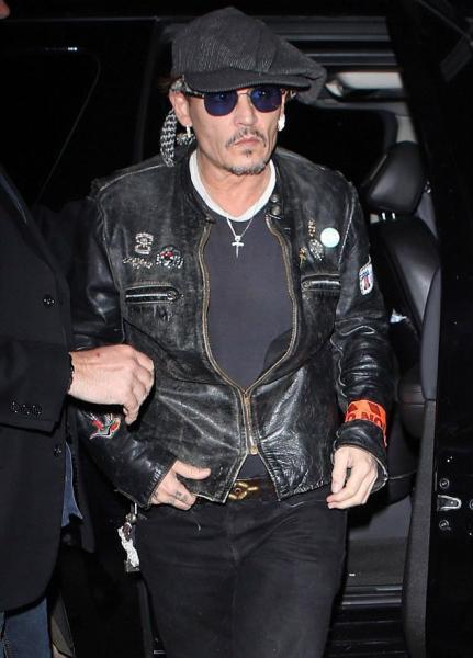 Актер Джонни Депп присутствовал на дне рождения певицы Леди Гаги. В сопровождении охранника Депп выглядел обычно остервенело в потрепанной кожаной куртке и черных джинсах перед праздничным вечером.