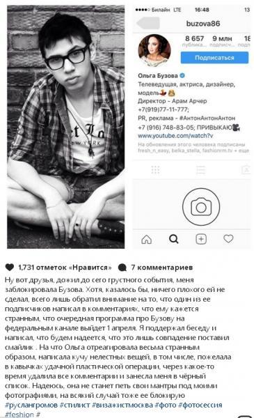 Конфликт знаменитостей начался из-за комментария в Инстаграме Ольги Бузовой. Один из подписчиков обратил внимание на дату выхода в телевизионный эфир программы, посвященной Ольге. Фолловера насмешил тот факт, что ее поставили на 1 апреля. Громов решил защитить Бузову и в комментарии предположил, что это лишь совпадение. Скорее всего, Ольга приняла комментарий стилиста за издевку. По его словам, Бузова написала ему много гадостей, которые, правда, позже удалила. Ведущая заблокировала стилиста, и он ответил ей тем же. Руслан поделился с фолловерами своим видением ситуации.