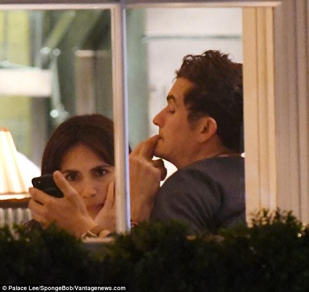 Звезда «Пиратов Карибского моря» был очень увлечен своим телефоном. Орландо и его спутница шутили и смеялись за ужином, рассматривая что-то на экране.