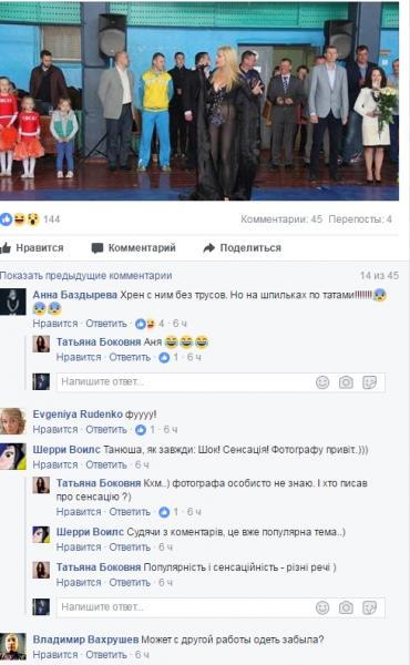 «Перед детьми выступила певица без трусов, какой срам. Это спортивный комплекс "Звезда". Кто пригласил к детям в таком наряде, очень интересно», — написал юзер Alex Mann в Facebook.