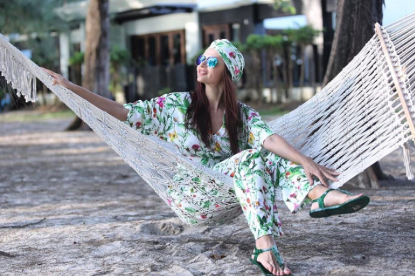 "Обращаюсь к кучке негативщиков пытающихся обзывать одежду от Alfa Woman и мои дизайнерские способности в частности. Я буду продолжать это делать, и делать это с душой, для моих поклонниц и женщин без возраста, проходя все этапы шаг за шагом. А пока я в гамаке в своём мягком комбезике подставляю лицо солнцу, а вы где злопыхатели? Что и где вы кому подставляете? И в чём себя пробуете?" - написала она под своим фото в гамаке.