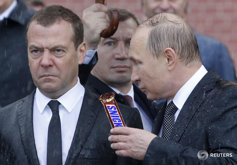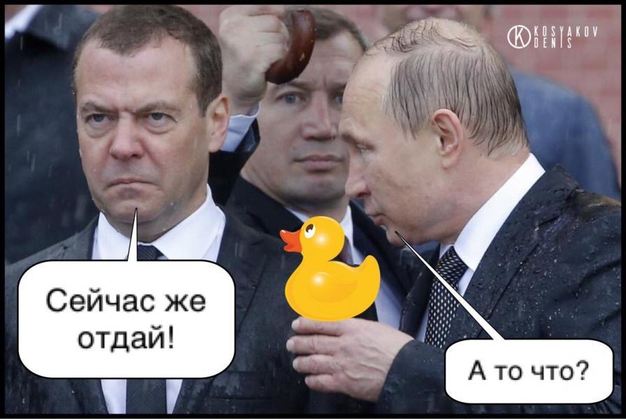 Но по-настоящему "взорвала" сеть фотография, на которой Медведев запечатлен с недовольным выражением лица, а Путин в это время что-то ему говорит.