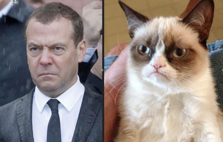 В соцсетях начали строить догадки, что могло так расстроить Дмитрия Анатольевича, и просторы интернета наводнили фотожабы. Российского премьера сравнили с Угрюмой кошкой и даже "поместили в Матрицу".