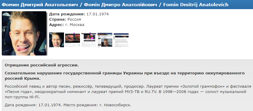 Фомин признался, что очень любит Львов, а на вопрос, чей Крым, ответил, что по факту полуостров является территорией РФ. При этом певец утверждал, что музыка не имеет границ, и люди творчества не имеют отношения к политике.