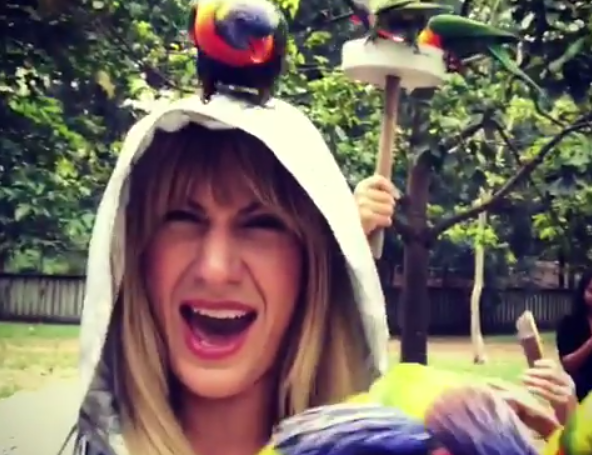 В своем Instagram Леся опубликовала видео, где на нее напало несколько разноцветных попугаев.